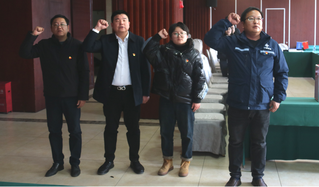 会议最后,举行了宣誓仪式,由孙西欢领读宣誓誓词,一位预备党员及三位新进党员进行了入党宣誓。