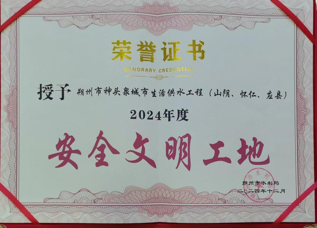 近日,必威体育平台中国登陆入口,朔州市神头泉城市生活供水工程项目在全市安全文明工地评选中脱颖而出,荣获“2024年度安全文明工地”奖项。