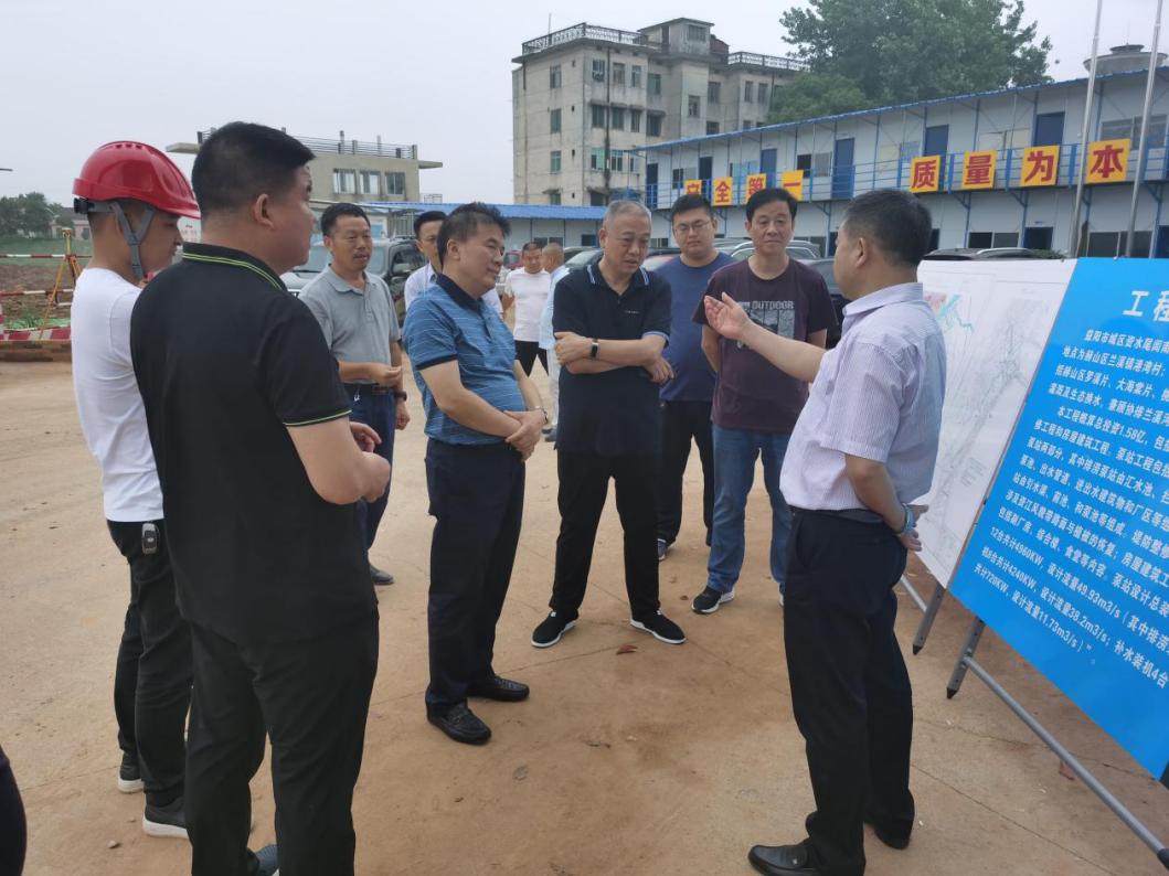 6月22日,益阳市副市长汤瑞祥、市水利局局长孙小华一行到必威体育平台中国登陆入口,团洲泵站项目部调研指导工作,必威体育平台中国登陆入口,总经理、副总经理龚友良、张开陪同。