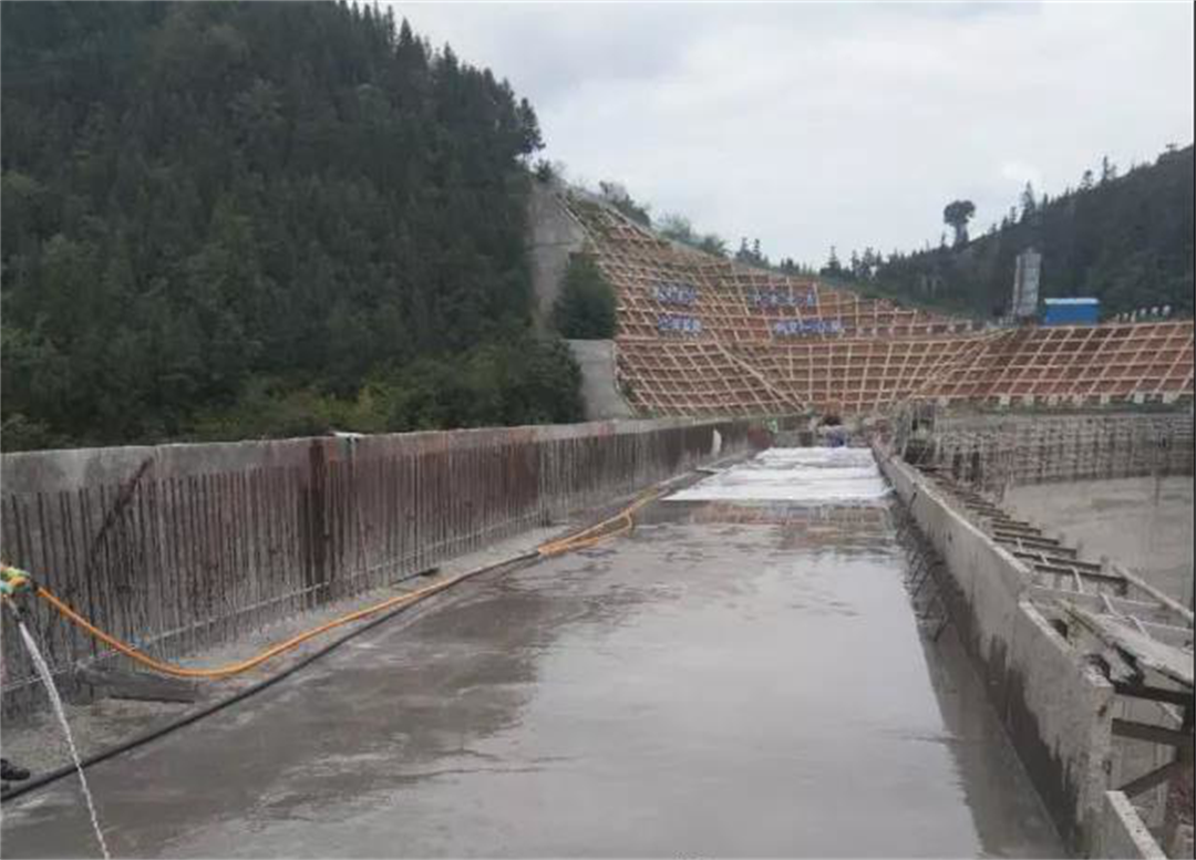 白水水库属III等中型水库,水库枢纽工程为碾压混凝土重力坝,坝顶高程1248.00m,坝长190.00m,顶宽5.00m,最大坝高50.00m。大坝主要工程量:碾压砼6.86万m3,坝顶常态砼1700m3,溢流面及闸墩3300m3,消力池5540m3。