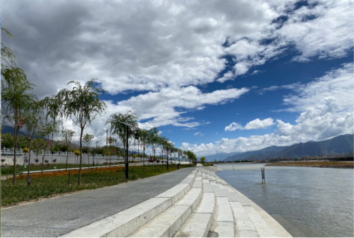 目前,项目部正在进行生态景观工程苗木、花卉的养护工作。正值金秋九月,拉萨河畔格桑花争相开放,蓝天碧草,构建成了拉萨河城区段良好的生态形象,形成了“水清、岸绿、河畅、景美”的生态廊道。