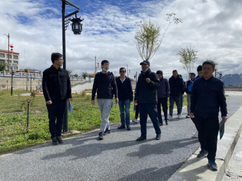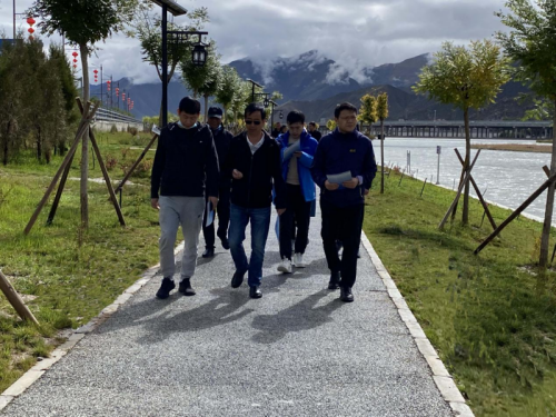 张栋一行先后来到项目贡布堂段、2#闸右岸段两处现场,调研了项目护岸工程、生态景观工程体系建设运行情况,对项目开工以来安全施工、质量管控及目前苗木、花卉的养护情况进行了深入了解,同时实地考察了项目护岸工程对于归顺水流、稳定河势、保护现状提防等方面的有效性,以及生态景观工程在增加林草覆盖率、减少区域水土流失等方面的保护治理情况。张栋表示,拉萨河城区段综合治理及生态修复工程作为西藏自治区的重点水利工程,在一定程度上展现了拉萨市水利建设的重大发展。