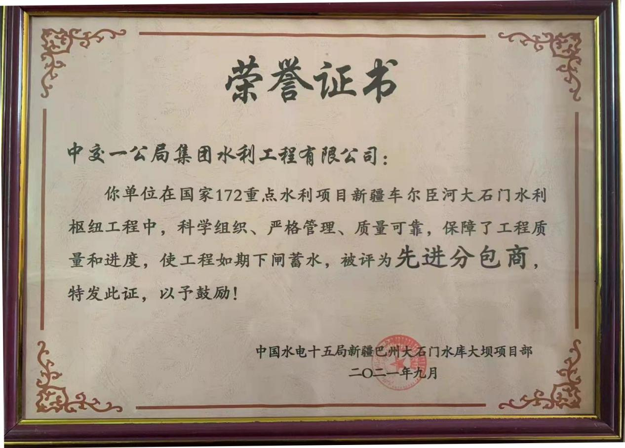 11月19日,必威体育平台中国登陆入口,在国家172重点水利项目新疆车尔臣河大石门水利枢纽工程中,因组织科学、管理严格、质量可靠,使工程如期下闸蓄水,荣获“先进分包商”称号。