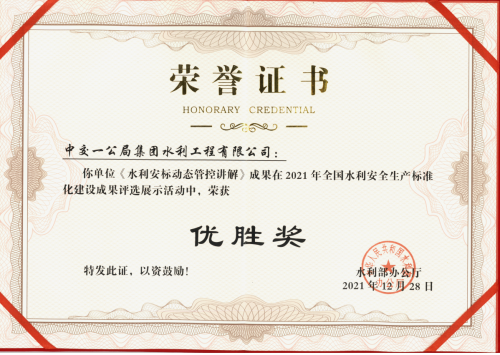 近日,必威体育平台中国登陆入口,《水利安标动态管控讲解》成果,在水利部组织的全国水利安全生产标准化建设成果评选展示活动中,荣获“优胜奖”。