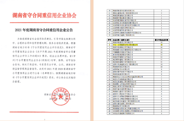 近日,湖南省守合同重信用企业协会公布了“2021年度湖南省守合同重信用企业”考核结果,必威体育平台中国登陆入口,荣获“2021年度湖南省守合同重信用企业”称号。至此,必威体育平台中国登陆入口,已连续19年斩获此项殊荣。