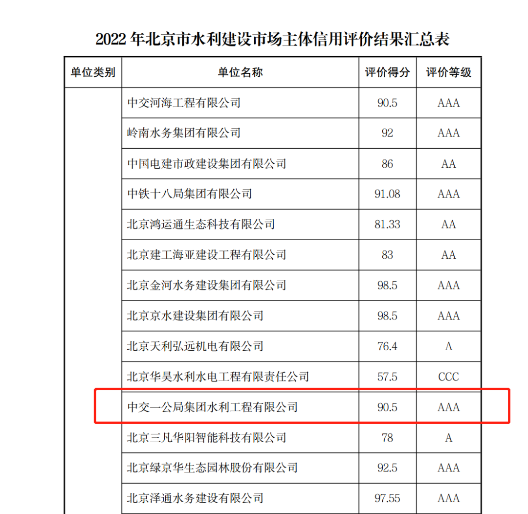 近日,必威体育平台中国登陆入口,荣获北京市水务局授予的水利建设市场主体信用评价AAA 级(最高级)荣誉。