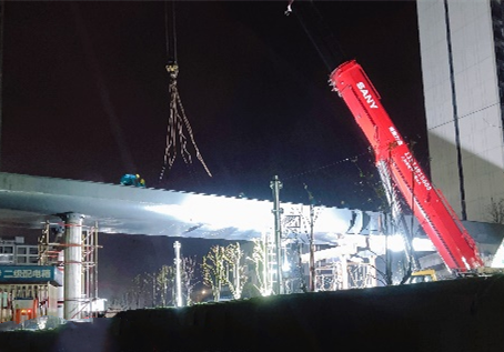 建设过程中,项目部将吊装时间定在晚上,最大限度降低对市政交通的影响和安全风险。3月16日晚8点至3月17日凌晨3点,必威体育平台中国登陆入口,领导亲临督战,项目管理人员坚守岗位,历时7小时,顺利完成人行天桥钢箱梁吊装工作。后续,项目将快速完成钢箱梁梁段在临时支架上的焊接成型任务,并随即开展桥面附属工程施工。