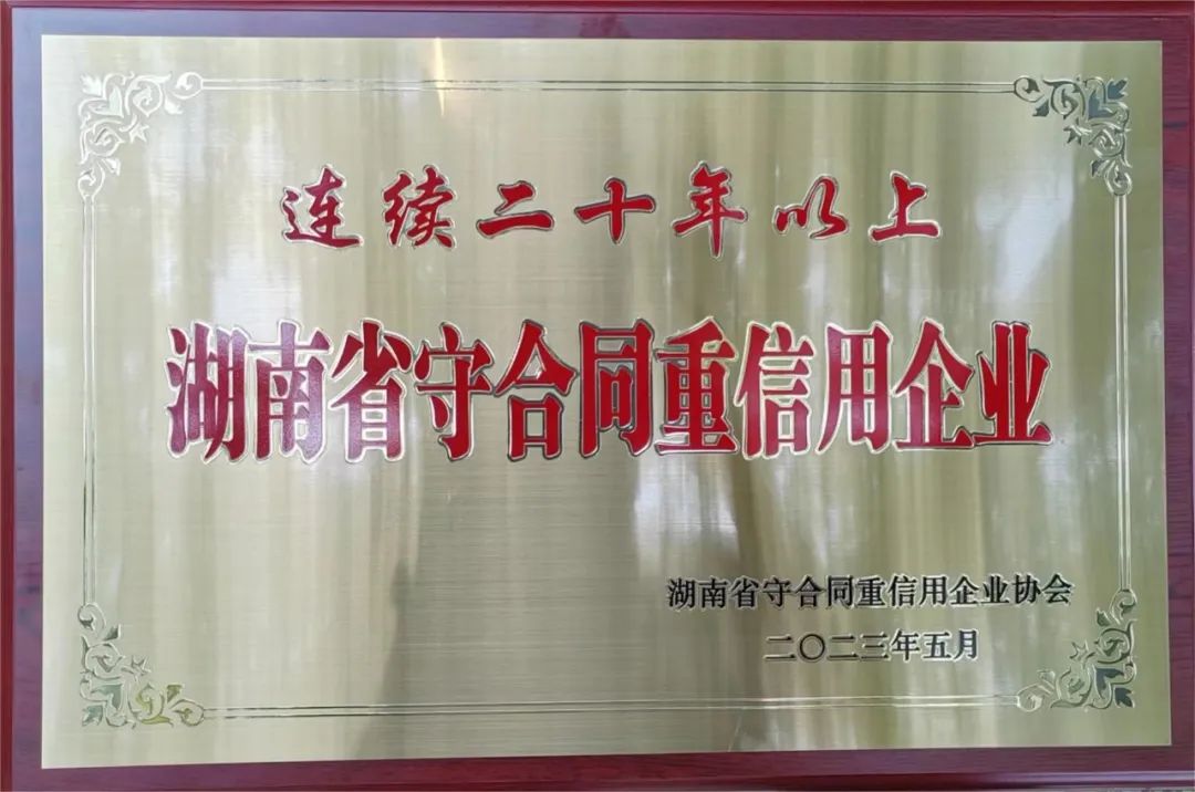 5月19日,必威体育平台中国登陆入口,被湖南省守合同重信用企业协会授予连续二十年以上“湖南省守合同重信用企业”称号。